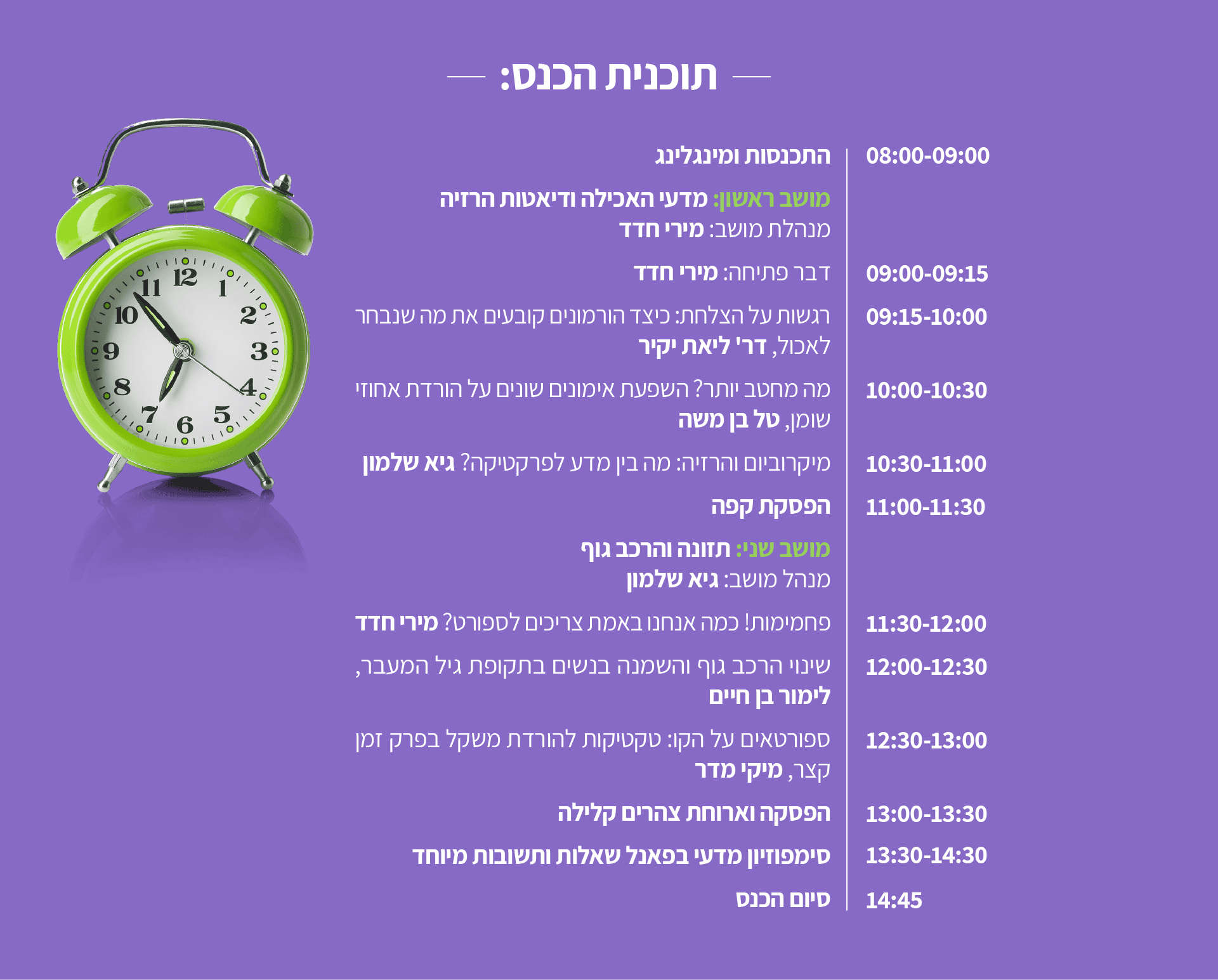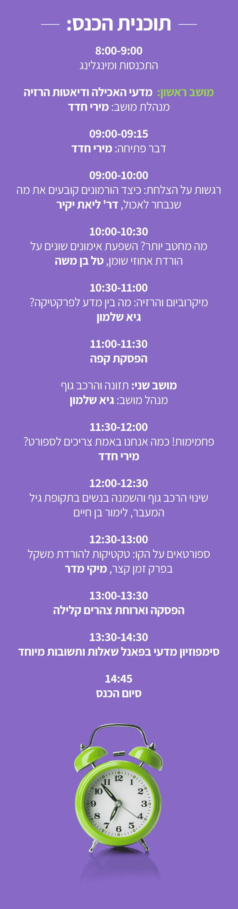 המושב הראשון יעסוק במדעי האכילה ובדיאטות הרזיה.